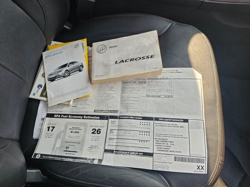 Discover the 2010 Buick LaCrosse CXL, an elegant sedan boasting a powerful 3.0L V6 engine that delivers 255 horsepower and 217 ft-lbs of torque. Finished in a sleek Carbon Black Metallic exterior, this vehicle features a refined Cocoa/Light Cashmere leather-appointed interior, providing a comfortable and luxurious driving experience.
